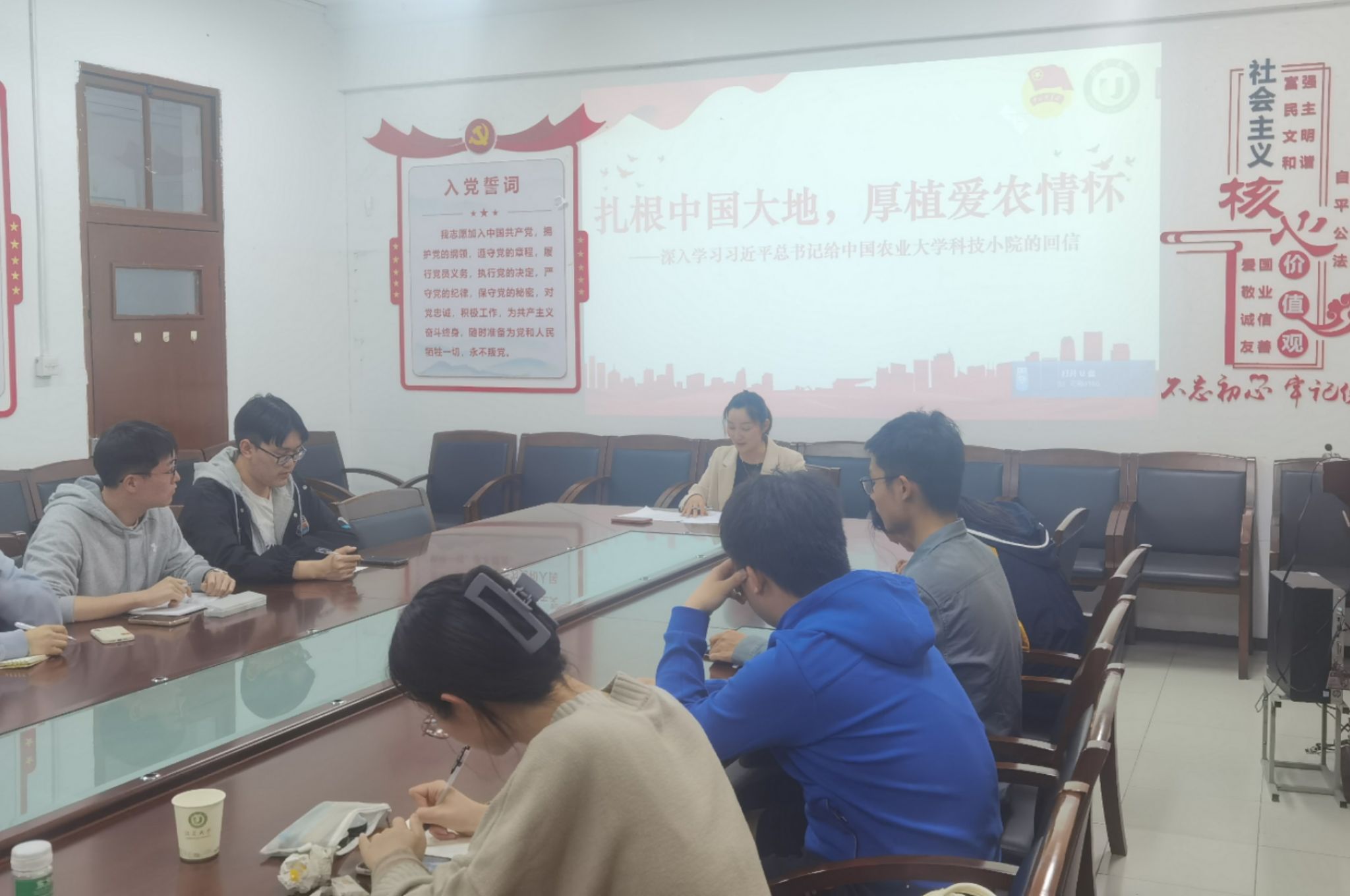 在数科院206会议室组织团学干部学习习近平总书记给中国农业大学科技小院学生的回信精神。学习会由黄色小说
