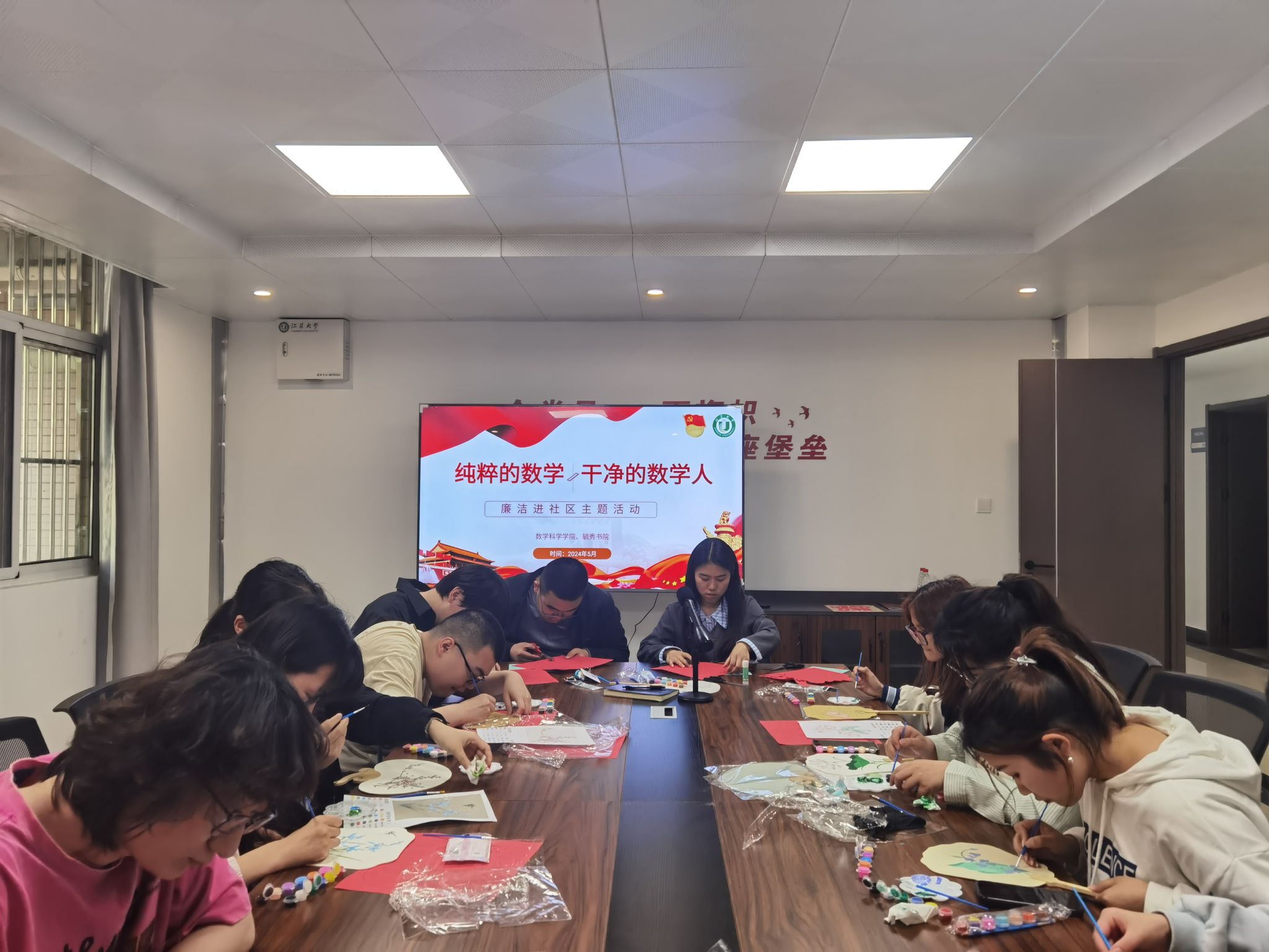 联合毓秀书院、公寓服务中心在毓秀书院开展“纯粹的数学,干净的数学人”廉洁进社区主题活动。公寓服务中心主任张洪、副主任马高强、行政经理李纪贤、公寓B区主管赵亚男、协管熊燕,数学科学学院团委副书记汪文丽,毓秀书院辅导员盛任出席,2022级、2023级部分研究生党员参加。