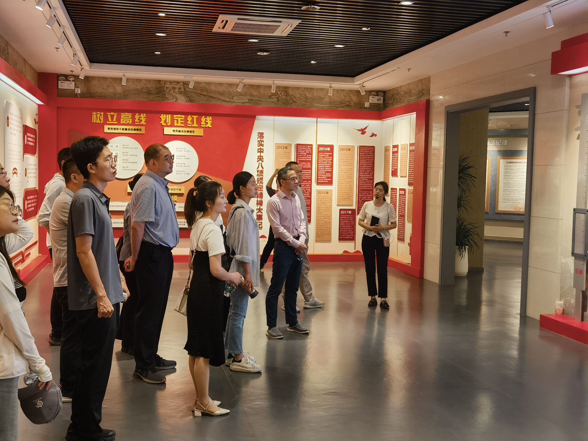 在讲解员的引导下,全体人员参观了警示教育基地“严明纪律 管党治党”“挺纪在前 筑牢底线”“聚焦重点 靶向整治”“以案促改 以案促治”“见贤思齐 砥砺前行”“牢记嘱托 感恩奋进”等主题展厅,一段段刻骨铭心的教训,一声声痛彻心扉的悔悟,发人深思、令人警醒,在一个个鲜活的典型案例前,党员们不时驻足观看,深受教育和触动。
