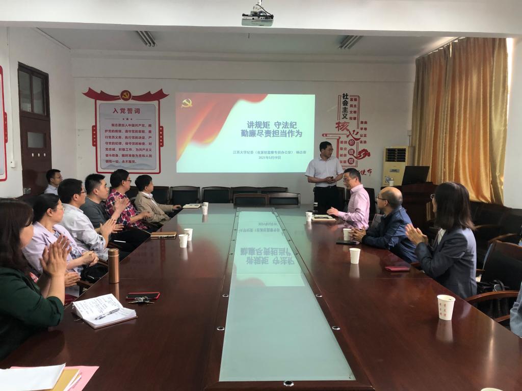 在动力楼206会议室开展了党规党纪专题讲座,讲座邀请了校纪委副书记杨志春主讲,学院全体中层领导干部、科级干部、各系主任、各支部书记,以及学院所有项目负责人参加了专题讲座。