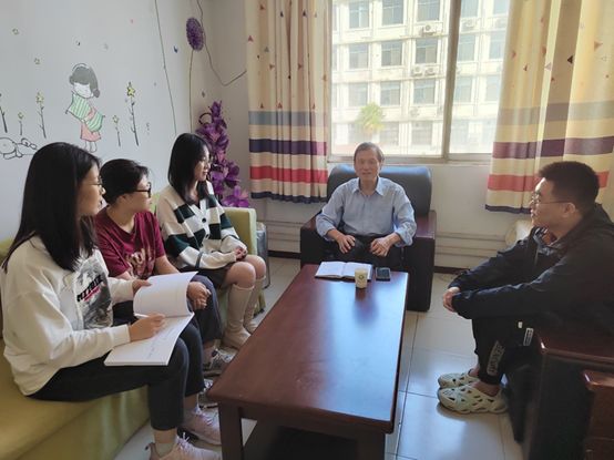 “风骨傲然,英雄当时”返家乡党史学习教育实践团队的青年学生代表向学院关工委王文初老教师分享团队成员在江苏省无锡、苏州、常州、南京及山西省晋中市等地进行的“不忘初心,薪火相传”拜访致敬各地老党员活动,王老师对活动开展过程密切关心并聆听同学们的总结。
