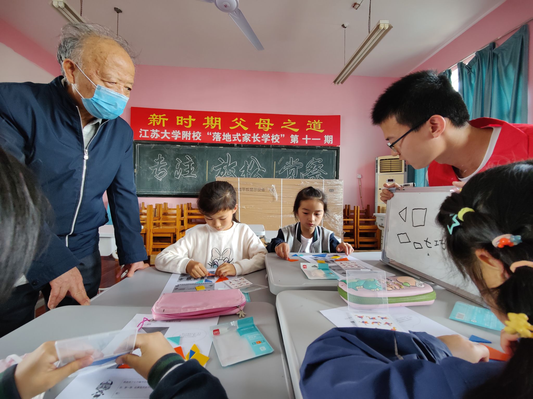 附属学校开展“七彩四点半”志愿服务活动,带领小朋友们学习了解七巧板的知识。本次活动特别邀请到学院辅导员尹华和学院关工委老教师张有德共同参与指导。